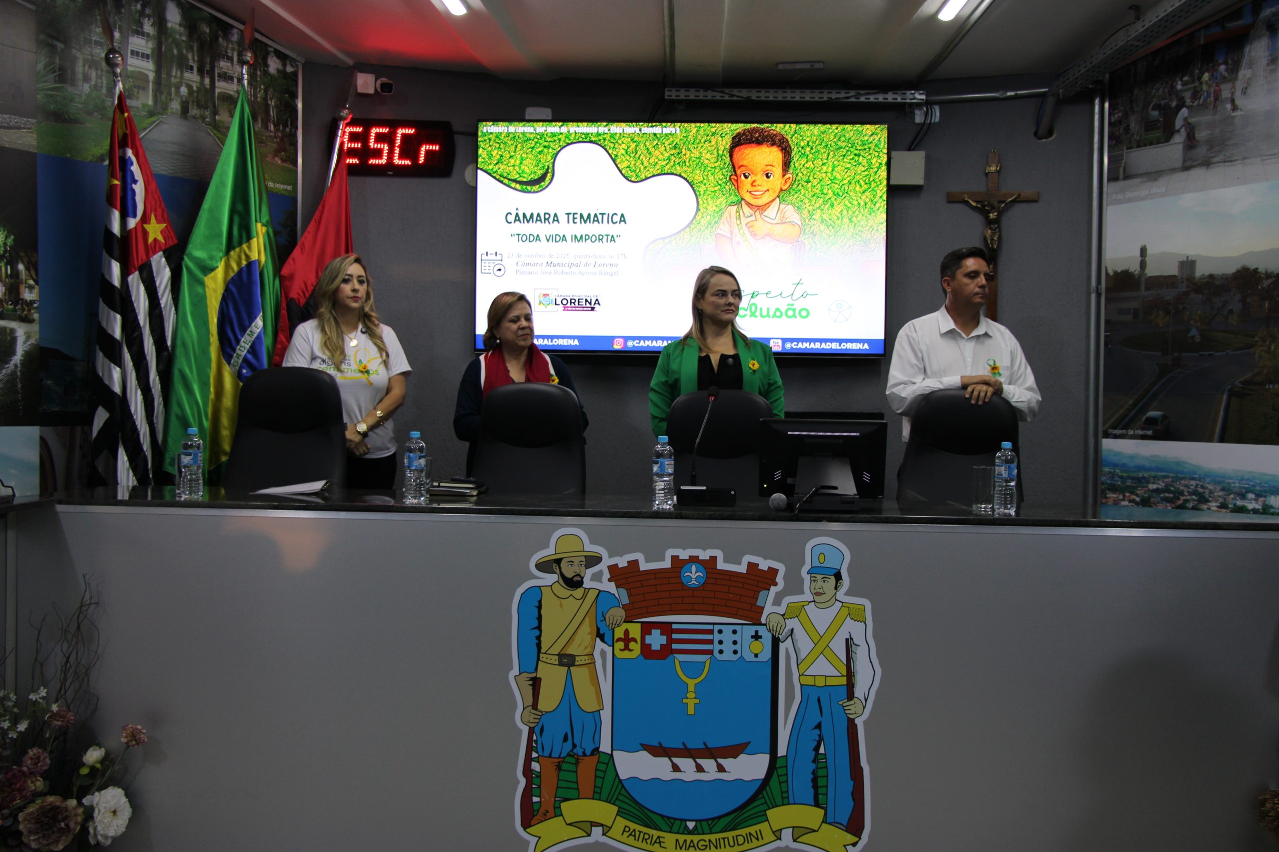 Com diálogo e mensagens de inclusão, o plenário do Legislativo Municipal de Lorena recebeu, na tarde desta quinta-feira (23/10), a Câmara Temática “Toda Vida Importa”, em referência ao Outubro Verde – mês voltado à conscientização, valorização e defesa das pessoas com nanismo – em parceria com a Annabra (Associação Nanismo Brasil). A iniciativa gratuita, instituída pela Lei Municipal nº 4.241/2024, denominada Tiago Henrique Rosa de Freitas (Titi), reforça o combate ao preconceito e incentiva o respeito à diversidade humana.