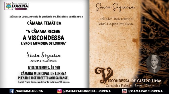 O Legislativo Municipal de Lorena realizará, na quarta-feira (17/9), às 15h30, um encontro que resgatará parte da nossa história: “A Câmara recebe a Viscondessa – livro e memória de Lorena”.