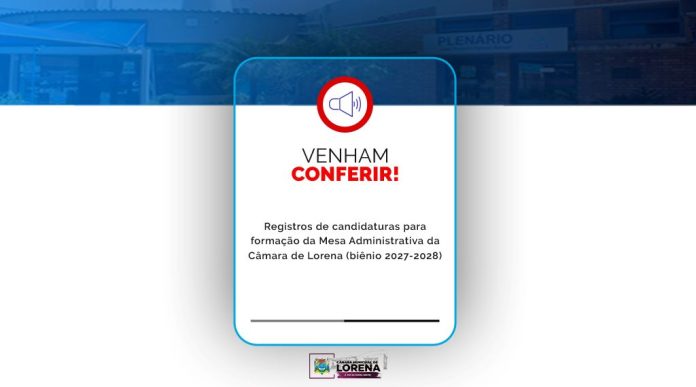 A eleição da Mesa Administrativa da Câmara de Lorena para o biênio 2027-2028, acontecerá na próxima segunda-feira (10), no plenário Legislativo.