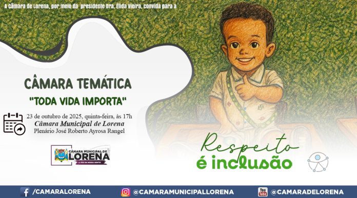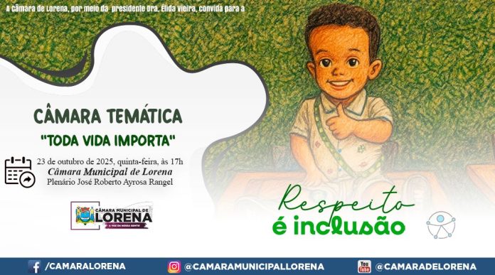 Em alusão ao Outubro Verde, mês de conscientização, valorização e defesa dos direitos das pessoas com nanismo, instituído pela Lei Municipal nº 4.241/2024, denominada Tiago Henrique Rosa de Freitas – Titi, que reforça o combate ao preconceito contra pessoas com nanismo, o Legislativo Municipal de Lorena realizará a Câmara Temática “Toda Vida Importa”. O evento acontecerá no dia 23/10 (quinta-feira), às 17h, no plenário.