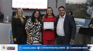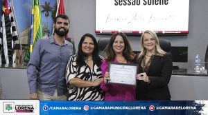 Maria Ângela da Cunha Varella, homenageada pelo vereador Bruno Camargo (PSD). Assistente social com 21 anos de atuação na Prefeitura de Lorena e atual coordenadora do CRAS II (Centro de Referência de Assistência Social) desde 2013. É reconhecida pela dedicação, sensibilidade e compromisso com as famílias em situação de vulnerabilidade.