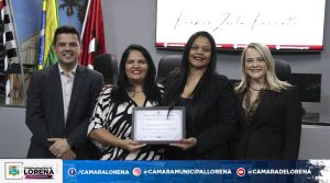 Wanessa Andréa da Silva Vieira, homenageada pelo vereador Waldemilson da Silva (Tão – PP), primeiro-secretário. Pedagoga com especialização no SUAS (Sistema Único de Assistência Social), tem ampla atuação no fortalecimento das políticas sociais. Foi coordenadora de entidade do terceiro setor, presidente do CMDCA (Conselho Municipal dos Direitos da Criança e do Adolescente) e vereadora em Lorena.