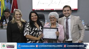 Carmem Lúcia dos Santos Miguel, homenageada pelo vereador Washington Cavalcante (Washington da Saúde – Republicanos). Formada em Serviço Social em 1986, iniciou sua jornada profissional na iniciativa privada, onde atuou por 12 anos na BASF. Atualmente é assistente social da Prefeitura de Lorena.