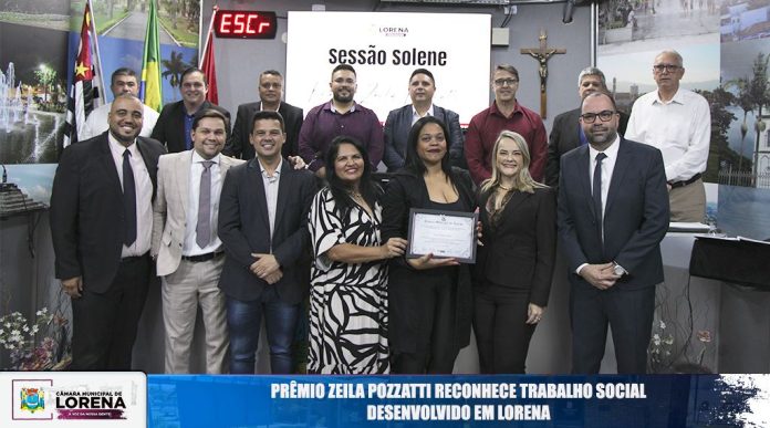 A emoção marcou à sessão solene de entrega do 1º Prêmio Zeila Pozzatti, realizada no plenário da Câmara de Lorena, na noite desta quinta-feira (29/5). A homenagem reconheceu 26 profissionais que atuam com destaque na área de assistência social do município.