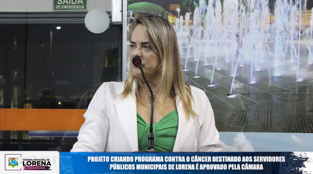 O Projeto de Lei (28/2025) da vereadora e presidente da Câmara de Lorena, Dra. Élida Vieira (PODE), criando o Programa Contra o Câncer destinado aos servidores municipais, foi aprovado em segunda discussão, na sessão de Câmara desta segunda-feira (31).